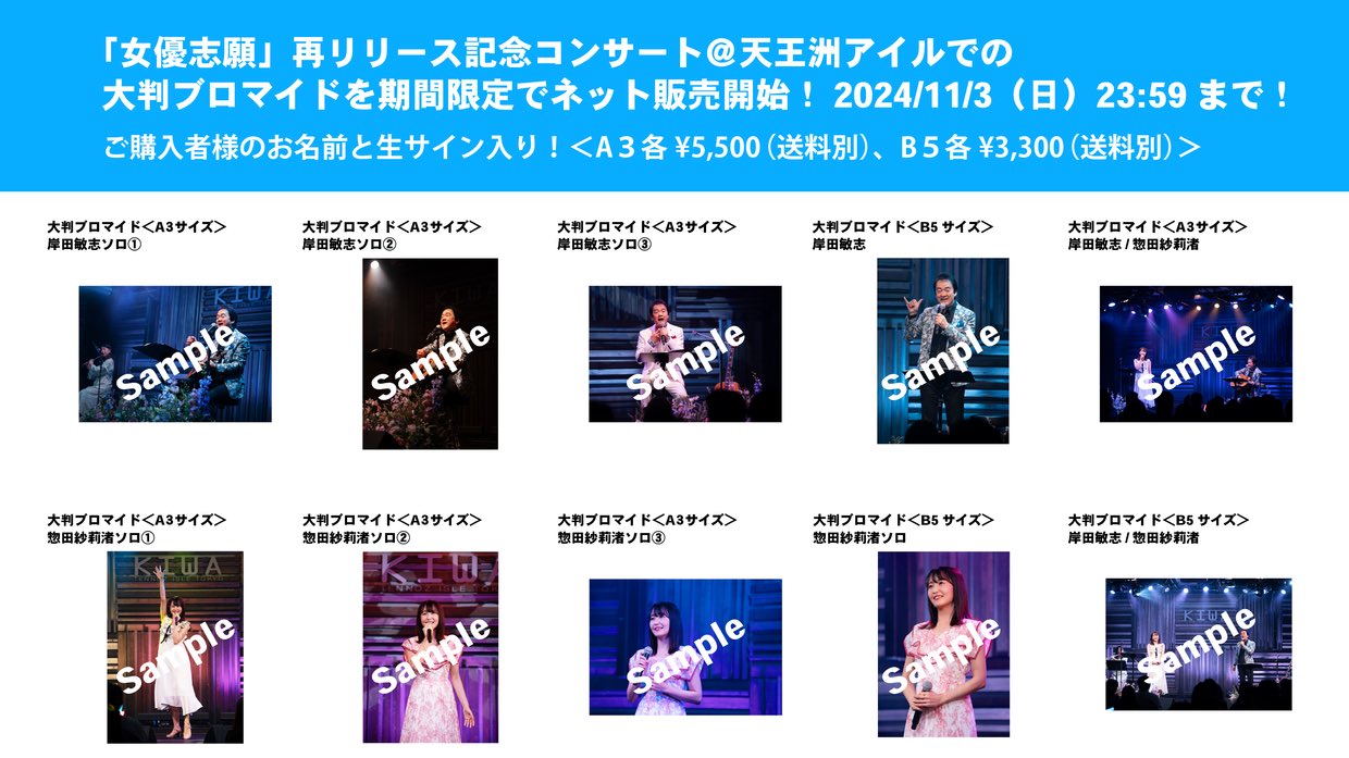 岸田敏志さんと惣田紗莉渚のコンサートの大判ブロマイドが、期間限定で販売中です✨